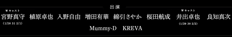 | 2月1日 | (土) | 開場12:15/開演13:00 開場17:15/開演18:00 |