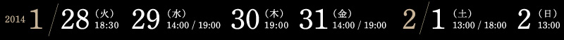 | 1月31日 | (金) | 開場13:15/開演14:00 開場18:15/開演19:00 |