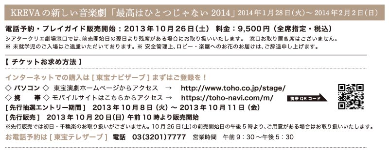 【前売開始日特電】0570-02-9930(音声自動応答 Pコード不要) 【10/27以降】0570-02-9999(音声自動応答 Pコード : 431-823)